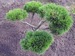 Pinus ,Gnom’ eignet sich durch die dicht geschlossen Zweige ideal als Formgehölz bzw. Bonsai. Die Nadeln stehen radial, dicht gedrängt und sind glänzend dunkelgrün. Boden, Standort und Verwendung siehe Pinus mugo.